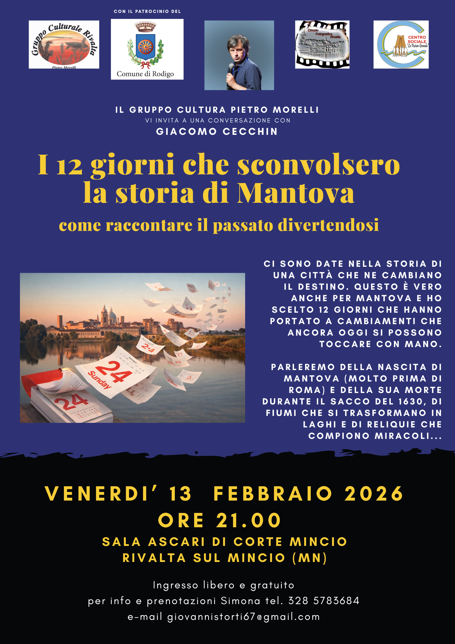 Il Gruppo Cultura Pietro Morelli organizza un incontro con Giacomo Cecchin dedicato a dodici date che hanno cambiato per sempre la storia di Mantova