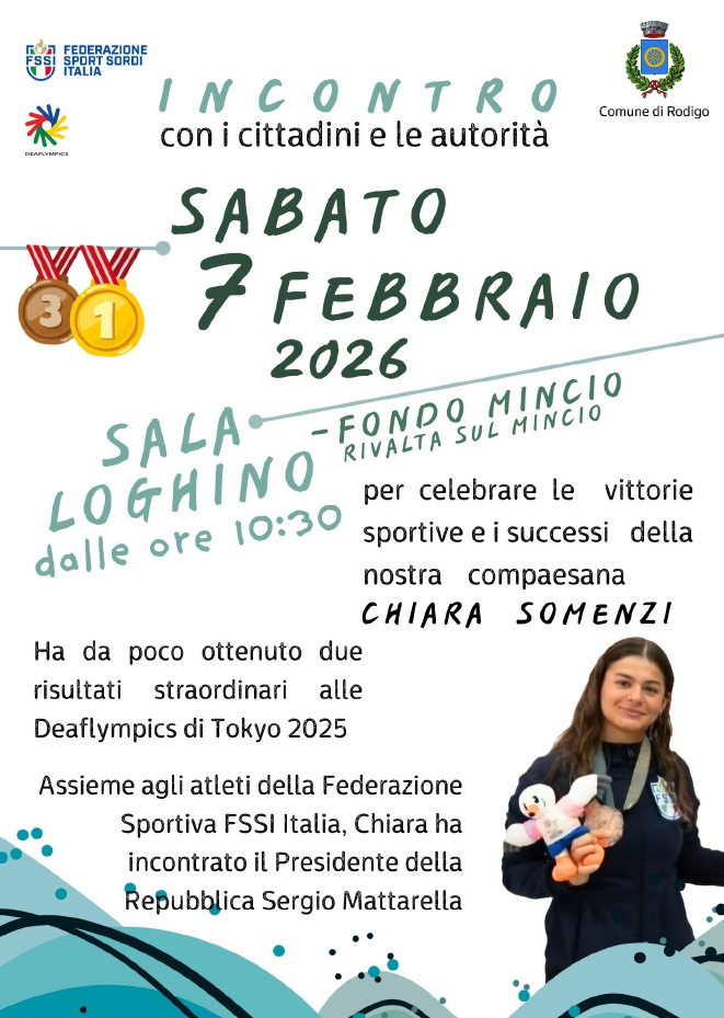 Il Comune di Rodigo organizza un incontro con la cittadinanza e le autorità per celebrare i recenti successi sportivi di Chiara Somenzi, atleta reduce da straordinari risultati alle Deaflympics di Tokyo 2025.